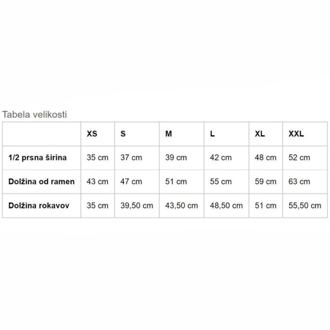 | Velikost | XS, S, M, L, XL, XXL |